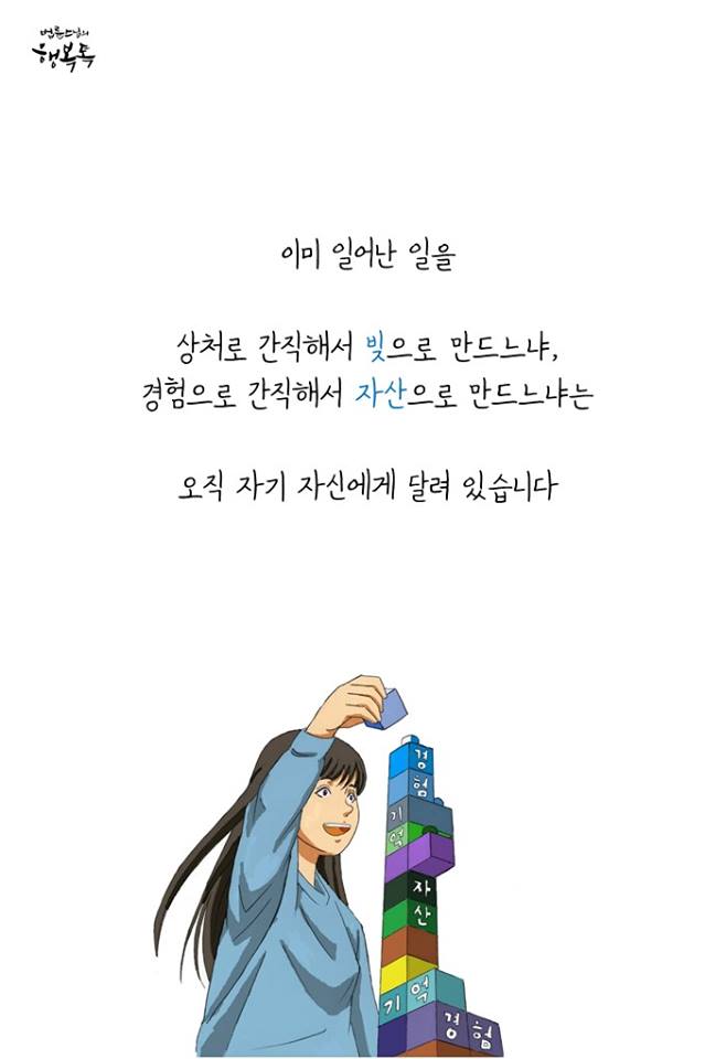 이미 일어난 일을 상처로 간직해서 빚으로 만들고 있나요? 경험으로 간직해서 자산으로 만들고 있나요?